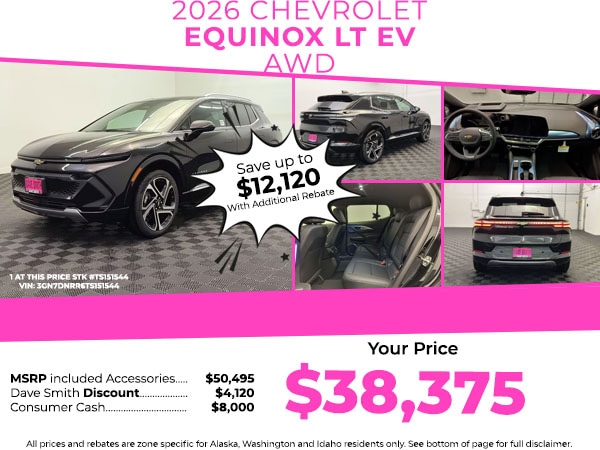 The leather seats in this vehicle are a must for buyers looking for comfort, durability, and style. This model stays safely in its lane with Lane Keep Assist. This 2026 Chevrolet Equinox EV keeps you comfortable with Auto Climate. It's Lane Departure Warning helps keep you in your lane. The vehicle has automated speed control that adjusts to maintain a safe following distance, enhancing highway driving convenience. The installed navigation system will keep you on the right path. This model offers Wireless Phone Charging. Keep your hands warm all winter with a heated steering wheel in the Chevrolet Equinox EV . Start the Chevrolet Equinox EV from inside with remote start. Protect it from unwanted accidents with a cutting edge backup camera system. This Chevrolet Equinox EV has an elegant black exterior finish. Maintaining a stable interior temperature in it is easy with the climate control system. This vehicle has a Electric Motor high output engine.