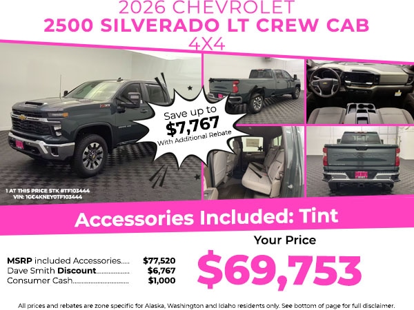 An off-road package is equipped on this model. The vehicle is equipped with the latest generation of XM/Sirius Radio. The steering wheel audio controls on this 3/4 ton pickup keep the volume and station within easy reach. This model comes equipped with Android Auto for seamless smartphone integration on the road. The vehicle's Lane Departure Warning helps keep you in your lane. The Chevrolet Silverado keeps you comfortable with Auto Climate. Bluetooth technology is built into this vehicle, keeping your hands on the steering wheel and your focus on the road. Never get into a cold vehicle again with the remote start feature on this 2026 Chevrolet Silverado 2500. Apple CarPlay: Seamless smartphone integration for it - stay connected and entertained on the go! This 3/4 ton pickup is pure luxury with a heated steering wheel. Protect it from unwanted accidents with a cutting edge backup camera system. Greater towing safety becomes standard with the installed trailer brake.