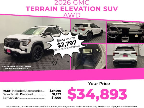 See what's behind you with the back up camera on this vehicle. The vehicle's Lane Departure Warning keeps you safe by alerting you when you drift from your lane. Lane Keep Assist in this mid-size suv helps maintain safe driving by gently steering to stay within the lane. This vehicle has auto-adjust speed for safe following. This model features a hands-free Bluetooth phone system. The vehicle is pure luxury with a heated steering wheel. The installed navigation system will keep you on the right path. This 2026 GMC Terrain offers Automatic Climate Control for personalized comfort. Start this vehicle from inside with remote start. The vehicle has a 4 Cyl, 1.5L high output engine. Keep safely connected while in this mid-size suv with OnStar. You may enjoy services like Automatic Crash Response, Navigation, Roadside Assistance and Hands-Free Calling. This mid-size suv shines with clean polished lines coated with an elegant white finish.