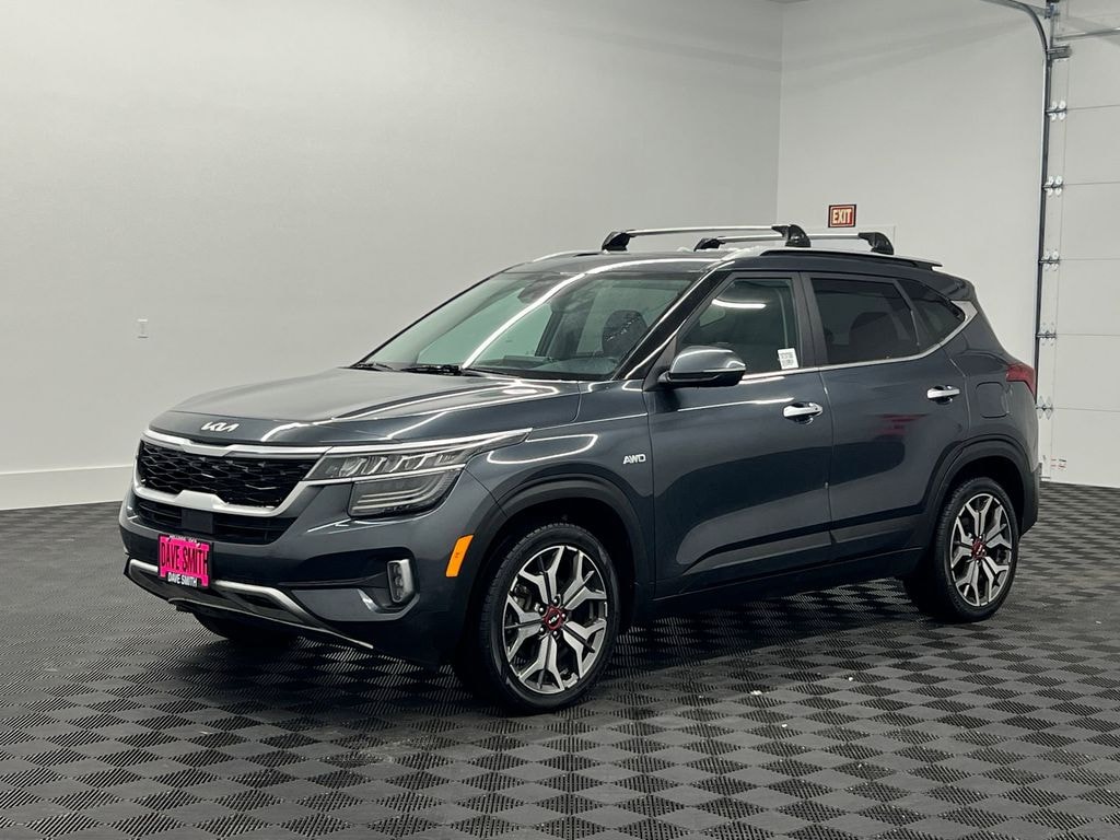 The vehicle utilizes collision avoidance to enhance safety by automatically detecting and evading potential accidents. The installed navigation system will keep you on the right path. It offers Apple CarPlay for seamless connectivity. This unit stays safely in its lane with Lane Keep Assist. This model features a high end BOSE stereo system. This model offers Android Auto for seamless smartphone integration. The leather seats in this 2022 Kia Seltos are a must for buyers looking for comfort, durability, and style. See what's behind you with the back up camera on this vehicle. Good News! This certified CARFAX 1-owner vehicle has only had one owner before you. This vehicle keeps you comfortable with Auto Climate. Never get into a cold vehicle again with the remote start feature on this small suv. It has a clean CARFAX vehicle history report. The vehicle features a hands-free Bluetooth phone system. The vehicle emanates grace with its stylish gray exterior.